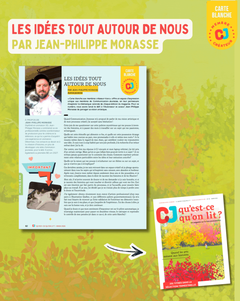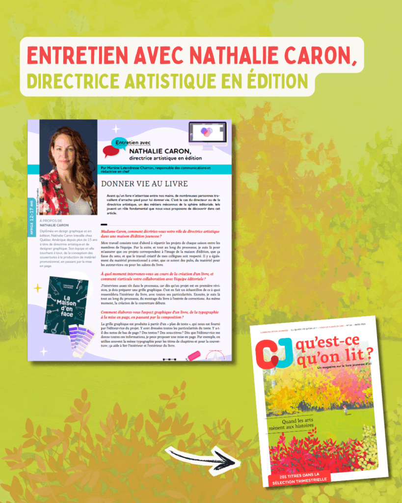 Diffusez-le largement dans vos réseaux pour faire rayonner la littérature jeunesse québécoise et franco-canadienne partout à travers le pays et, par ricochet, la mission de CJ. Bonne lecture !