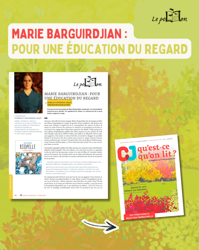 · Un article qui explore la littérature jeunesse comme pont entre les arts ;